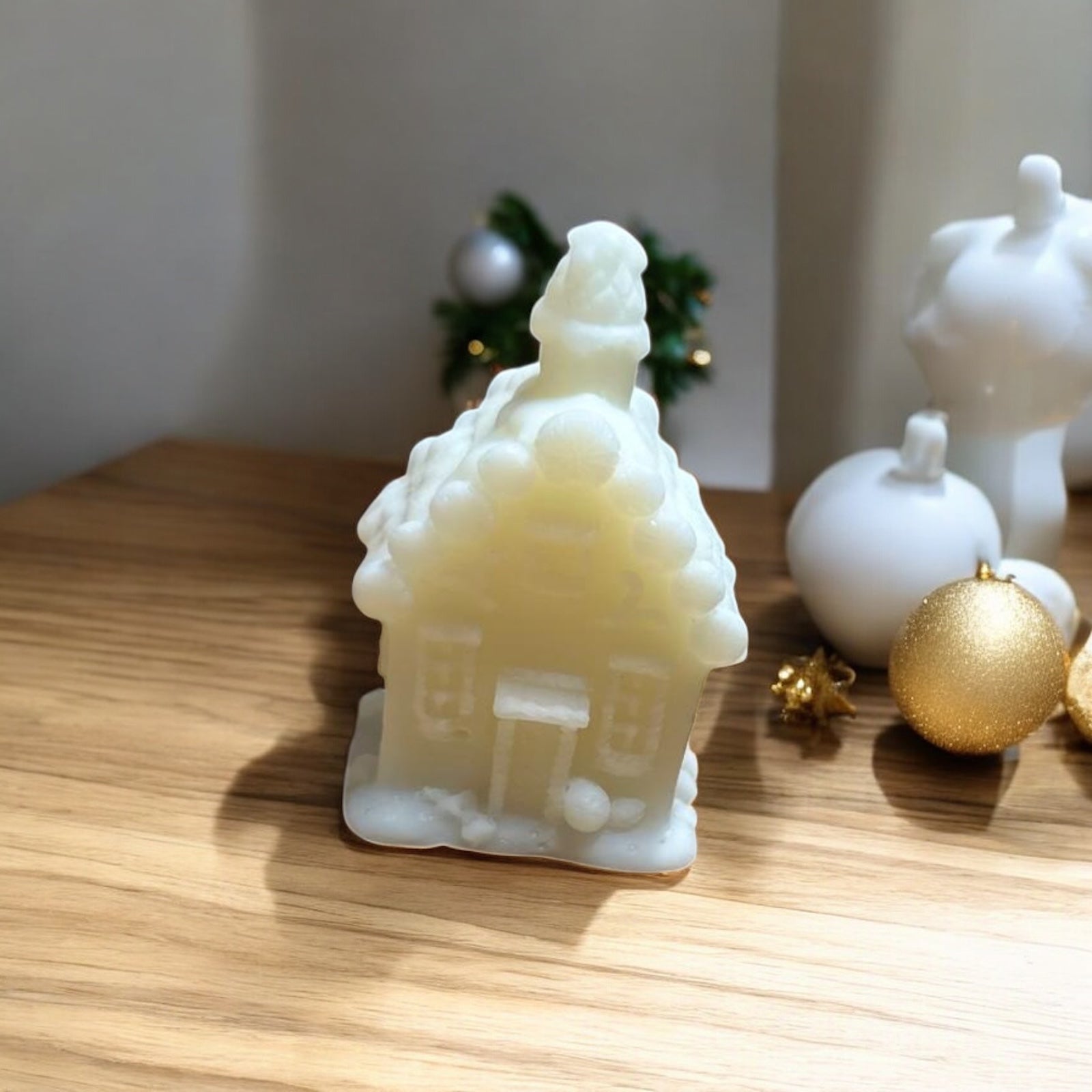 Un piccolo rifugio di luce e profumo per accompagnare le tue feste. Questa candela artigianale a forma di casetta è r...